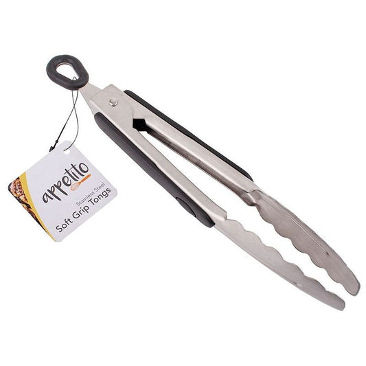 DLine Spatula Tongs Rubber Grips Pull Lock Stainless Steel 23cm