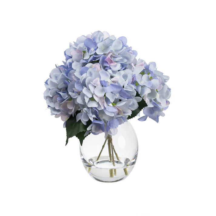 The **lavender-colored hydrangeas** exude a sense of calm and tranquility, creating a soothing ambiance that complements both modern and classic interior décor. The 27cm height makes it an ideal size for tabletops, shelves, and countertops, allowing it to stand out without overwhelming your space. Encased in a sleek, transparent glass vase, the arrangement adds a contemporary touch while providing stability and a clean, polished look.